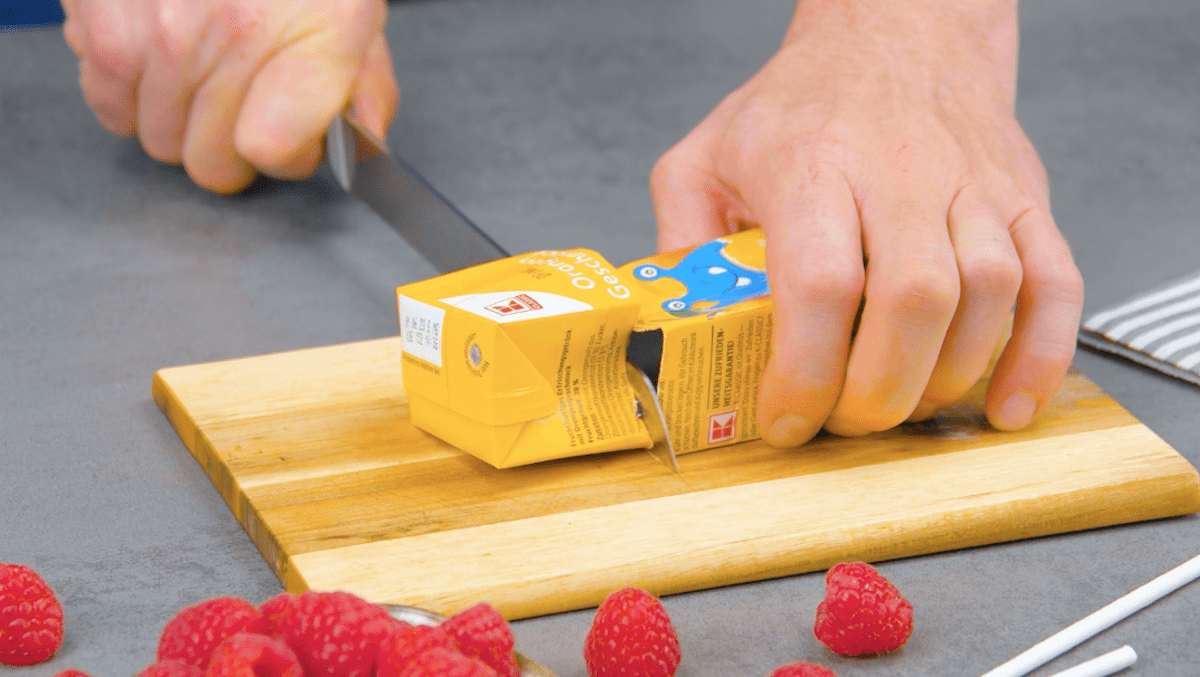 3.1 À l’aide d’un couteau bien aiguisé, coupez la brique vide à 1/4 du haut.