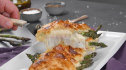 Feuilleté aux asperges avec du jambon, du fromage et de la feta