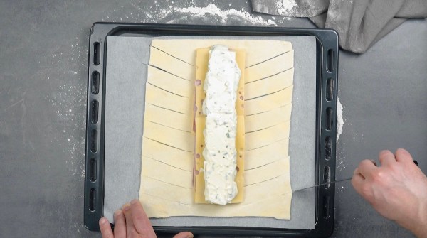 • Coupez la pâte de chaque côté à intervalles réguliers en diagonale.