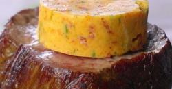 - Sortez le beurre au bacon du frigo, retirez-le du film alimentaire et coupez-le en tranches de 2 cm d'épaisseur environ. Coupez le filet en tranches que vous déposez ensuite sur une base de sauce aux champignons. Posez un morceau de beurre sur la viande puis ajoutez les pommes duchesse tout autour.