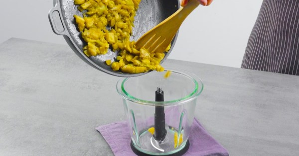 • Une fois refroidie, versez la chair dans un mixeur avec les épinards, les œufs et la gousse d'ail et mixez le tout jusqu'à obtenir une pâte homogène. Assaisonnez avec du sel, du poivre et de la noix de muscade.