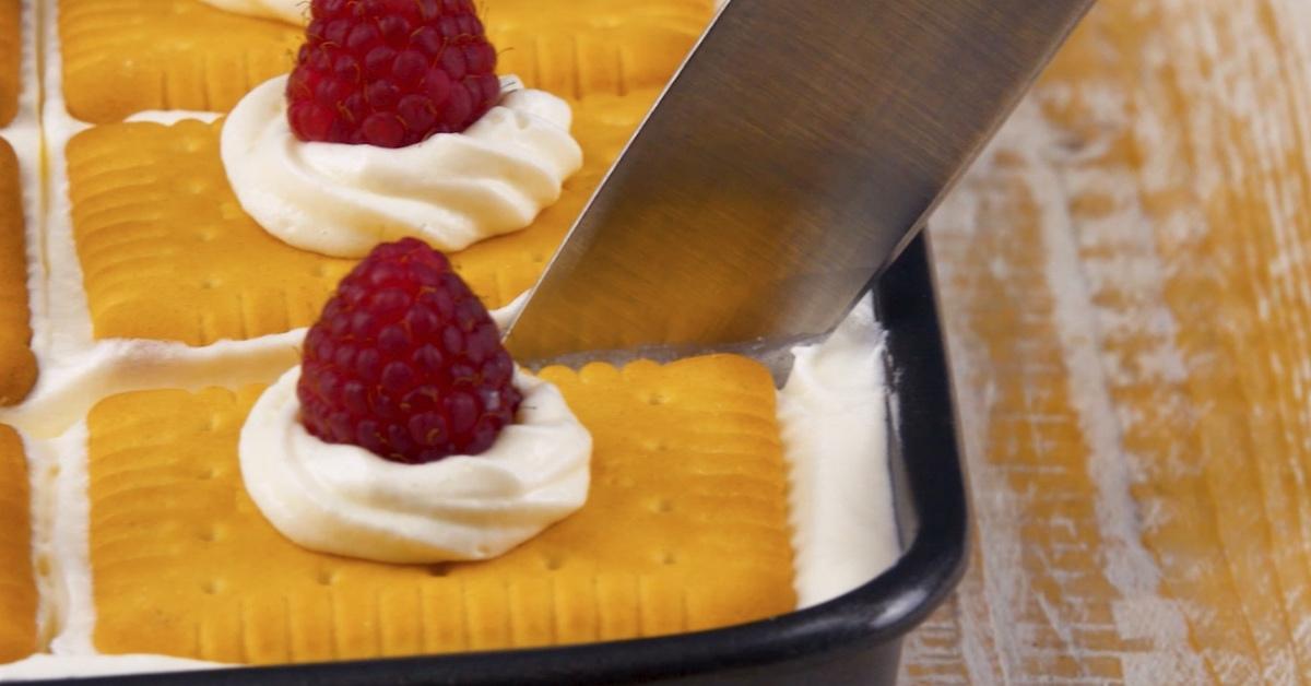 Les Petits-Beurre autrement : mêlés aux framboises, une pâtisserie apparaît.