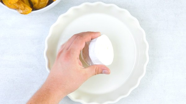 - Mettez un camembert entier au milieu du moule et empilez une autre moitié dessus. Placez les frites à la verticale autour du fromage jusqu'à ce que le moule soit complètement rempli.