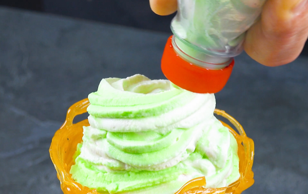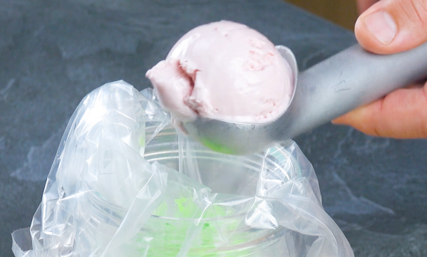 Bien sûr, vous pouvez choisir le type de glace en fonction de votre humeur. Notre recette est également délicieuse avec de la glace au chocolat. Utilisez l’astuce de la bouteille en plastique pour donner à n’importe quel type de glace l’aspect typique de la glace italienne. Bon Ap’ !