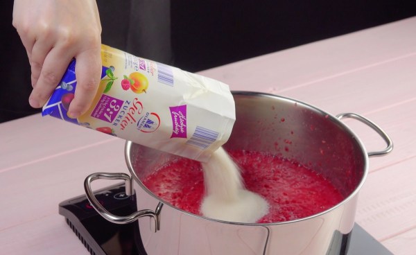 • Mettez les framboises dans une casserole et réduisez-les en purée à l'aide d'un mixeur plongeant. Ajoutez le sucre gélifiant et portez le tout à ébullition tout en remuant. Laissez bouillir à feu vif pendant 3 minutes, en remuant constamment. Remplissez ensuite des bocaux avec la confiture pour la conserver.
