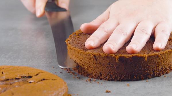 - Montez les blancs d'œufs en neige avec du sucre et mettez-les de côté pour l'instant. Ensuite, mélangez le beurre avec les jaunes d'œufs et ajoutez la farine, le cacao et la Maïzena. Ajoutez progressivement le lait. Ensuite, incorporez le blanc d'œuf battu. Placez la pâte dans un moule à gâteau graissé et enfournez le tout pendant environ 40 minutes à 175 °C. Laissez ensuite refroidir le gâteau et découpez trois bases d'environ 1,5 cm d'épaisseur.
