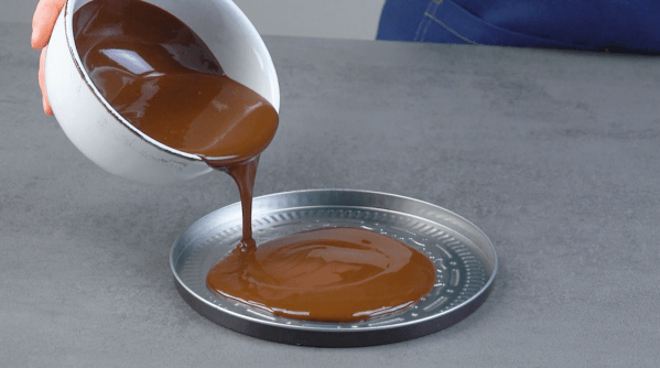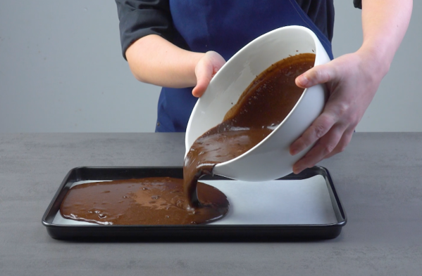 • Versez la pâte sur une plaque à pâtisserie recouverte de papier sulfurisé et enfournez-la pendant environ 30 minutes à 175 °C. Laissez-la refroidir ensuite.
