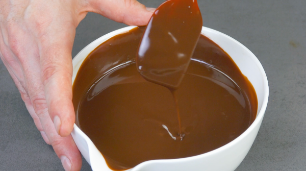 - Faites bouillir la crème et versez-la sur le chocolat noir haché. Mélangez bien le tout et laissez la ganache refroidir un peu.