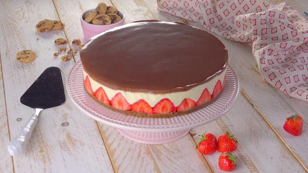 C’est déjà la fin de la saison des fraises, mais avec un peu de chance, vous pourrez en trouver encore quelques-unes. Et si vous ne savez pas quoi en faire : laissez-vous simplement inspirer par la recette suivante ! Avec des fruits frais, une crème onctueuse et un glaçage au chocolat noir, ce gâteau est un véritable succès. Suivez le guide :