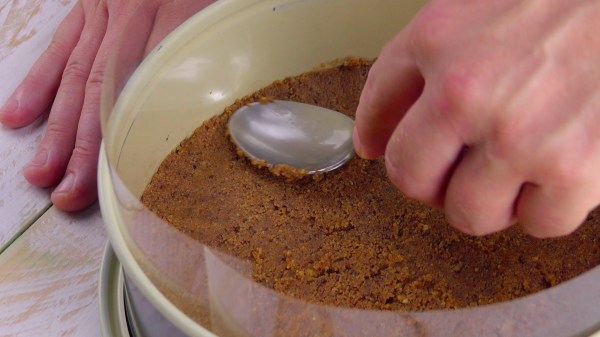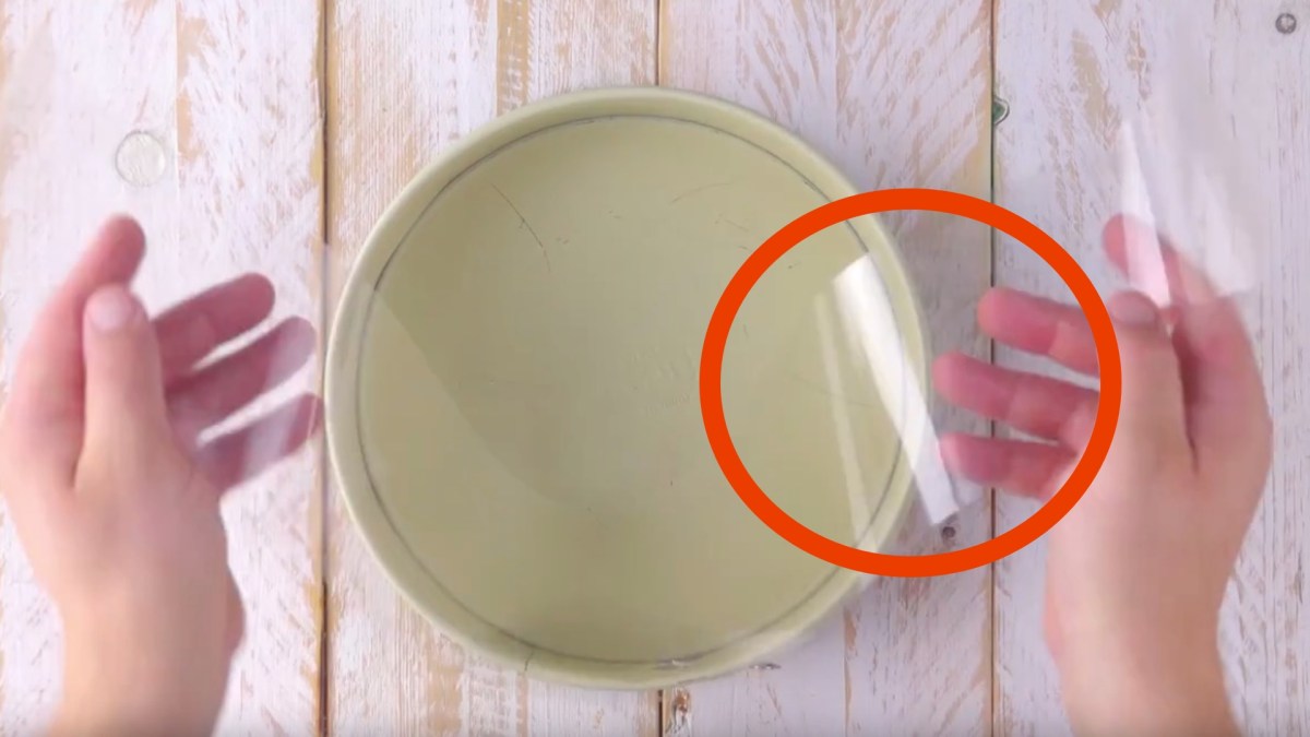 - Émiettez d'abord les biscuits et mélangez-les avec le beurre fondu. Ensuite, déposez du papier transparent tout autour des bords d'un moule à charnière (diamètre : 24 cm). Étalez ensuite la chapelure sur le fond du moule et pressez fermement le tout avec le dos d'une cuillère.