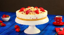 - Pour finir, déposez le reste de fraises fraîches sur le dessus et laissez reposez au frais pendant 4 heures. Il ne vous restera plus qu’à démouler délicatement votre gâteau avant de le présenter à vos convives.