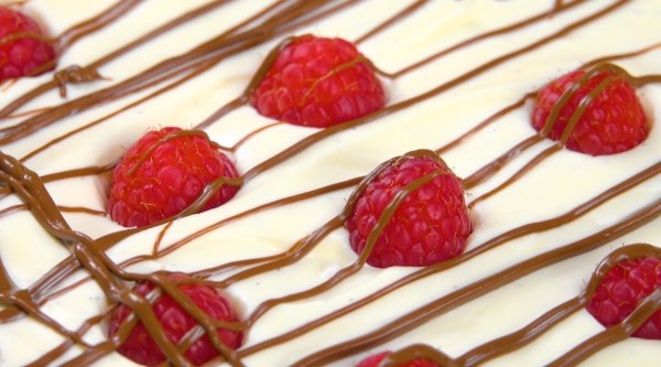 - La couche suivante nécessite à nouveau 1/4 de crème au mascarpone. Placez quelques framboises dans la crème et étalez de nouveau quelques touches de Nutella sur celle-ci. Mettez ensuite une autre crêpe par-dessus.