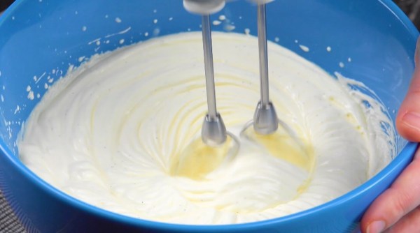 - Mélangez le mascarpone avec le sucre glace, la crème fouettée et la pulpe d'une gousse de vanille. Mélangez le tout jusqu'à ce que vous obteniez une consistance ferme et crémeuse.