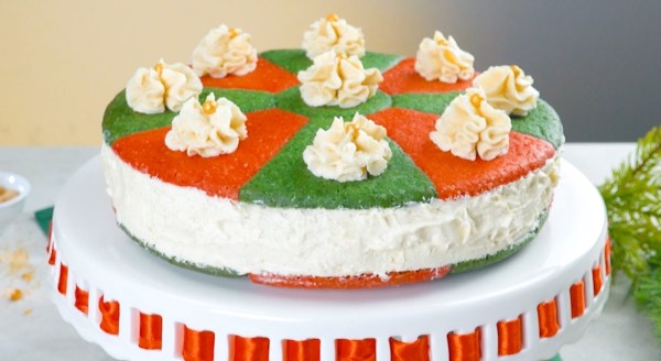 Les couleurs des biscuits géants donnent à ce gâteau l’aspect de Noël et le pain d’épice dans la crème de fromage frais lui confère le goût de Noël. Ce magnifique gâteau de Noël fera fureur sur toutes les tables. Bon Ap’ !
