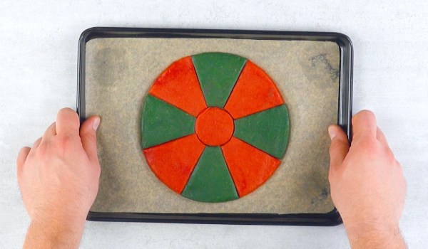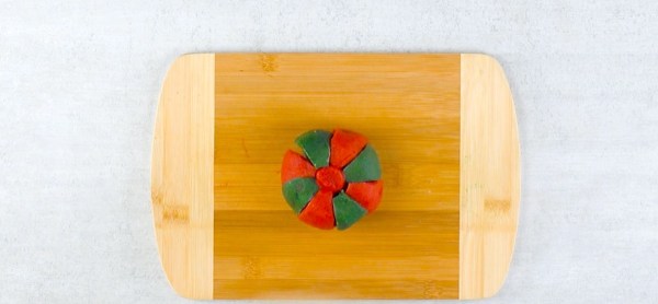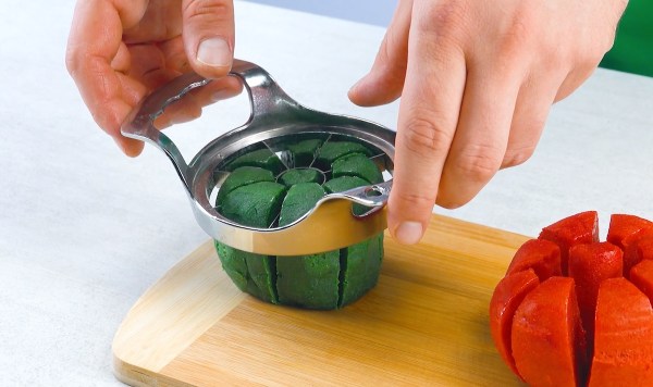 • Découpez les boules de pâte à biscuits avec un coupe-pomme de manière à obtenir huit segments et un cylindre central.