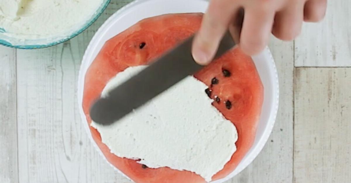 - À l'aide d'une spatule, recouvrez l'ensemble de la pastèque avec la mixture.