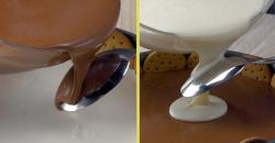 - Versez la deuxième moitié de la crème blanche sur le gâteau, de nouveau sur le dos d'une cuillère à soupe, et laissez refroidir le gâteau pendant deux heures. Vous pouvez décorer le gâteau avec des bandes de chocolat fondu.
