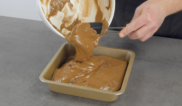 - Séparez les œufs et battez les blancs d'œufs avec environ la moitié du sucre et du sel. Battez ensuite les jaunes d'œufs avec l'autre moitié du sucre et l'arôme de vanille. Mélangez les ingrédients secs, c'est-à-dire la farine, le cacao et la levure chimique. Incorporez délicatement les blancs d'œufs à la masse de jaunes d'œufs. Ajoutez de l'huile et tamisez les ingrédients secs. Versez la pâte dans un moule à gâteau carré et faites-la cuire pendant 35 minutes à 175 °C (en mode convection). Laissez ensuite refroidir complètement le gâteau.