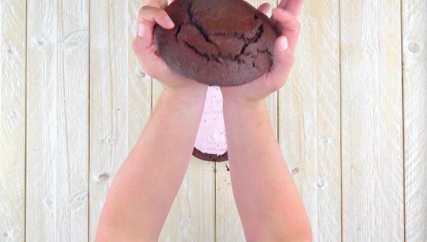 - Couper maintenant le gâteau en deux à l'horizontale. Videz la partie inférieure à l'aide d'une cuillère, en laissant un bord d'environ un centimètre de large.