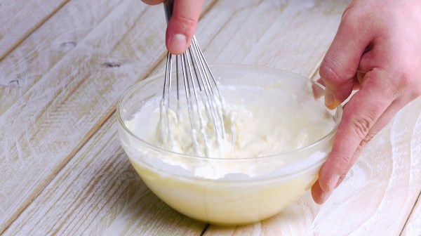 • Fouettez le beurre jusqu'à l'obtention d'une masse mousseuse puis mélangez-la avec le fromage frais et la crème fouettée.