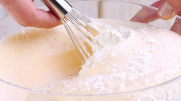• Mélangez la farine et la levure chimique et faites-les passer à travers un tamis dans le mélange, puis incorporez-les délicatement.