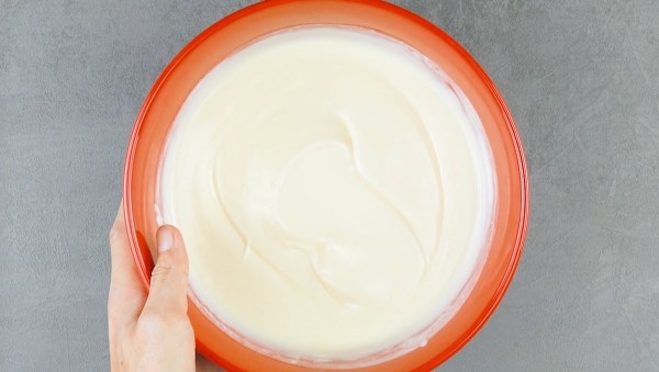 • Pour la crème, mélangez d'abord le fromage frais et le sucre, puis ajoutez la crème et le jus de citron. Dissolvez la gélatine dans de l'eau chaude et mélangez-la à la crème.