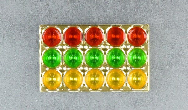• 37.5 g gélatine en poudre (jaune, rouge et verte)
