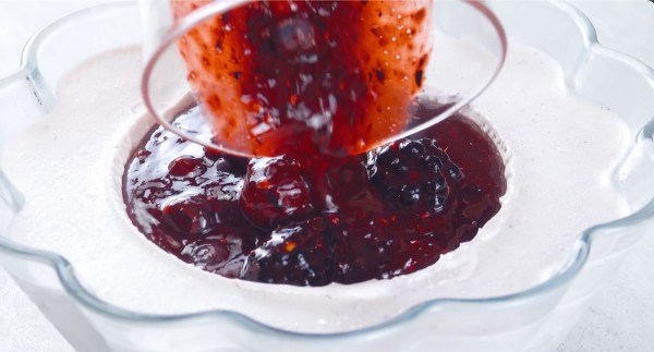 - Sortez la glace du congélateur et retirez le bol. Versez ensuite la sauce avec les baies entières dans le creux.