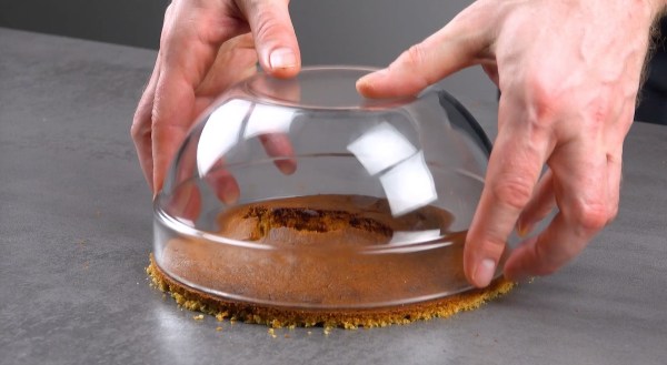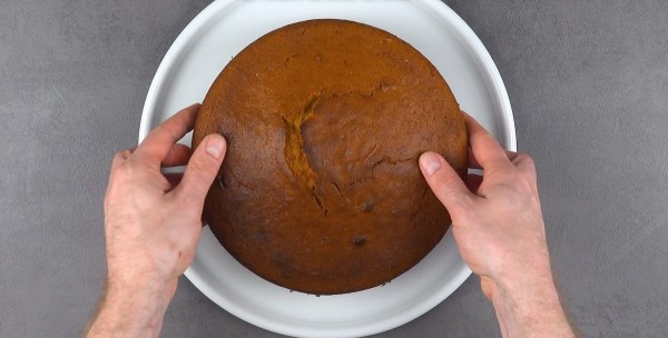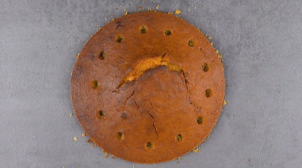 - Coupez le bord du gâteau ; il est préférable d'utiliser un bol pour préserver sa forme ronde.