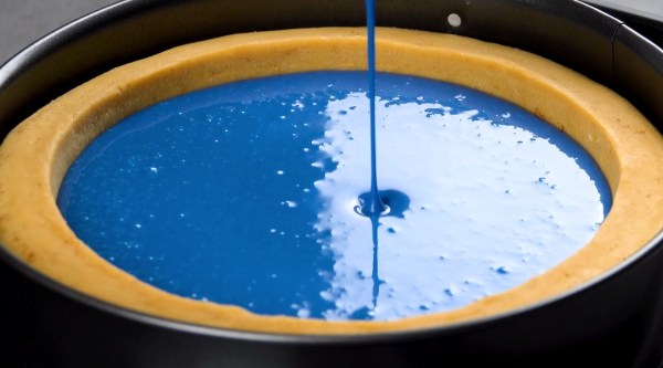 - Faites tremper la gélatine dans de l'eau froide. Faites bouillir l'eau et le sucre ; la température idéale est de 103 °C pour que le glaçage ait plus tard une brillance optimale. Une fois la température atteinte, retirez immédiatement la casserole du feu et ajoutez le chocolat blanc en remuant à l'aide d'un fouet. Ajoutez ensuite le sirop, puis la crème : le mélange devrait maintenant avoir une consistance crémeuse. Une fois le glaçage refroidi à 60 °C, enfoncez doucement la gélatine et dissolvez-la dans le glaçage. Ensuite, mixez le mélange, mais faites attention à ne pas faire entrer d'air dans le glaçage pour éviter la formation de bulles et ajoutez le colorant alimentaire. Le glaçage bleu doit être à une température de 28-30°C avant d'être versé sur le gâteau.
