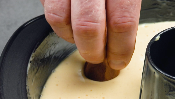 - Plongez les brigadeiros dans la pâte du moule à gâteau. Enfournez le tout à 180 °C pendant 30 minutes. Retournez le gâteau lorsqu'il est encore chaud et laissez-le refroidir complètement.