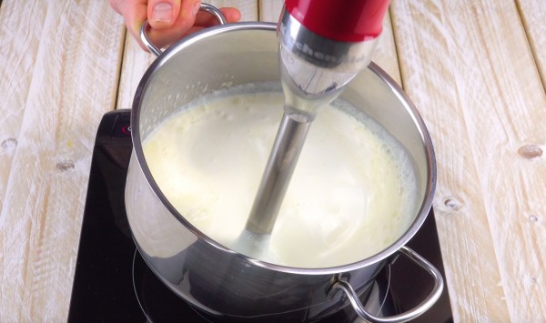 - Faites chauffer le lait concentré avec de l'eau et du sucre en remuant constamment. Lorsque le liquide est chaud (il ne doit pas bouillir !), ajoutez la gélatine et le chocolat et réduisez en purée à l'aide d'un mixeur.