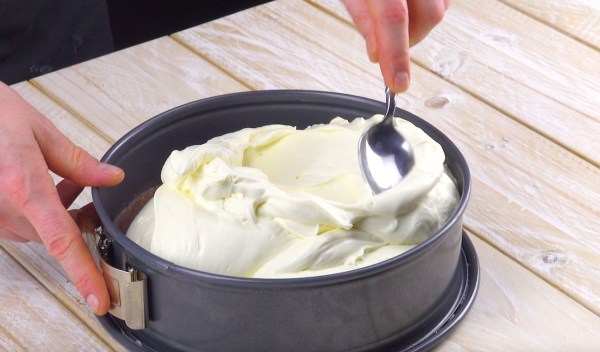 - Versez la crème dans un moule à charnière et lissez le tout avant de mettre au frais pendant 2 heures.