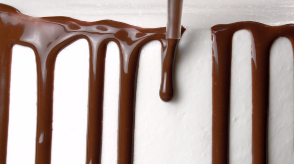 • Versez ensuite le chocolat fondu sur le bord du gâteau pour que le chocolat coule vers le bas.