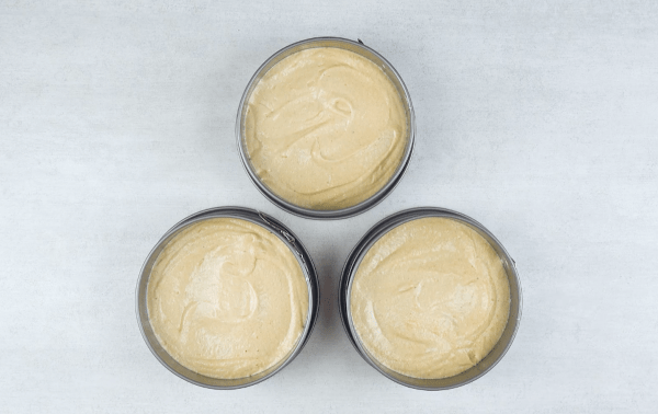 - Battez le beurre avec le sucre roux, le sucre blanc et l'huile jusqu'à ce qu'il soit mousseux. Ajoutez graduellement les œufs et continuez à battre jusqu'à ce qu'ils soient bien mélangés. Ajoutez ensuite la farine, le cidre, la levure chimique, le lait, l'arôme vanille, le sel et la cannelle. Mélangez à nouveau le tout avec un mixeur. Répartissez la pâte dans les 3 moules à charnière (environ 430 g par moule) et enfournez les trois moules à 175 °C en mode convection pendant environ 25 minutes. Après la cuisson, laissez les trois pâtes refroidir complètement.