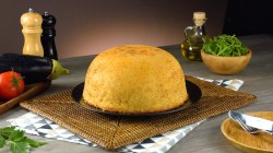 • Après trois quarts d'heure, le gâteau au risotto est cuit et vous pouvez le retourner à l'aide d'un plateau. Un plat exquis qui combine parfaitement tous les ingrédients et surtout, une expérience très savoureuse. Bon Ap'!