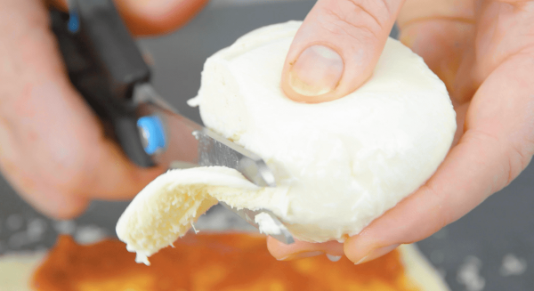 - Saupoudrez le parmesan râpé sur le plan de travail et étalez la pâte à pizza dessus. Mettez de l'origan, de l'ail en poudre et du sel dans la boîte de coulis de tomates et mélangez le tout. Déposez les tomates sur environ un tiers de la surface de la pâte et répartissez dessus de la mozzarella coupée et de l'huile d'olive.