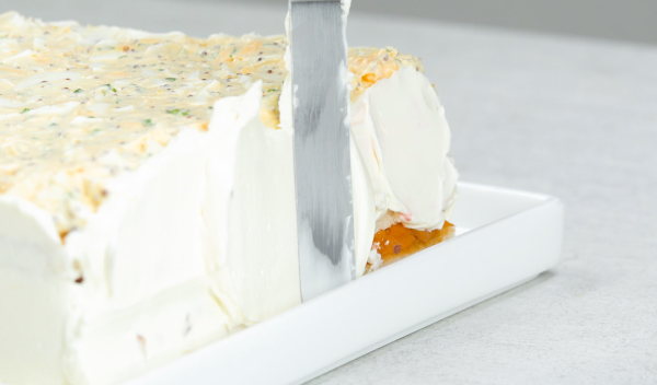 - Maintenant, étalez le fromage frais sur les côtés du gâteau.