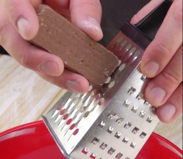 • Pour la crème à la cacahuète, versez le mascarpone avec le beurre de cacahuète dans un grand saladier. Tamisez le sucre glace et la Maïzena puis ajoutez le sucre. Râpez le Snickers avec une râpe à fromage.