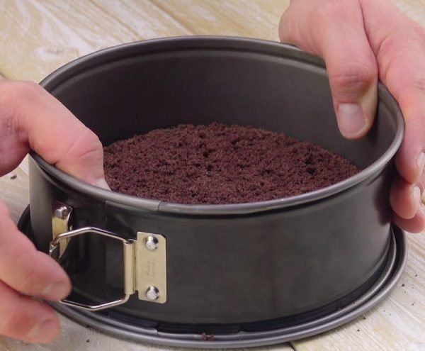 • Coupez le gâteau horizontalement en deux et posez la base dans un moule à charnière.