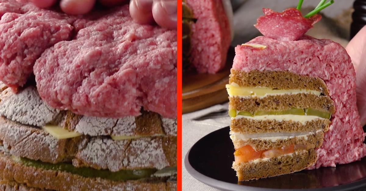 - Étalez la viande tout autour du pain de façon à l'enrober entièrement.