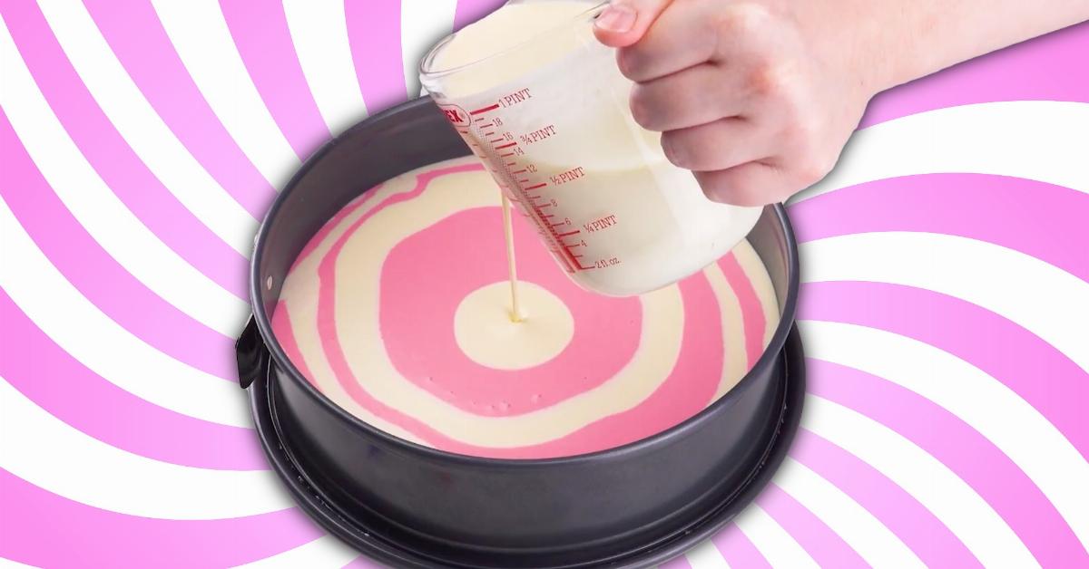 • Versez la crème au fromage en alternant les deux couleurs comme montré dans la vidéo.