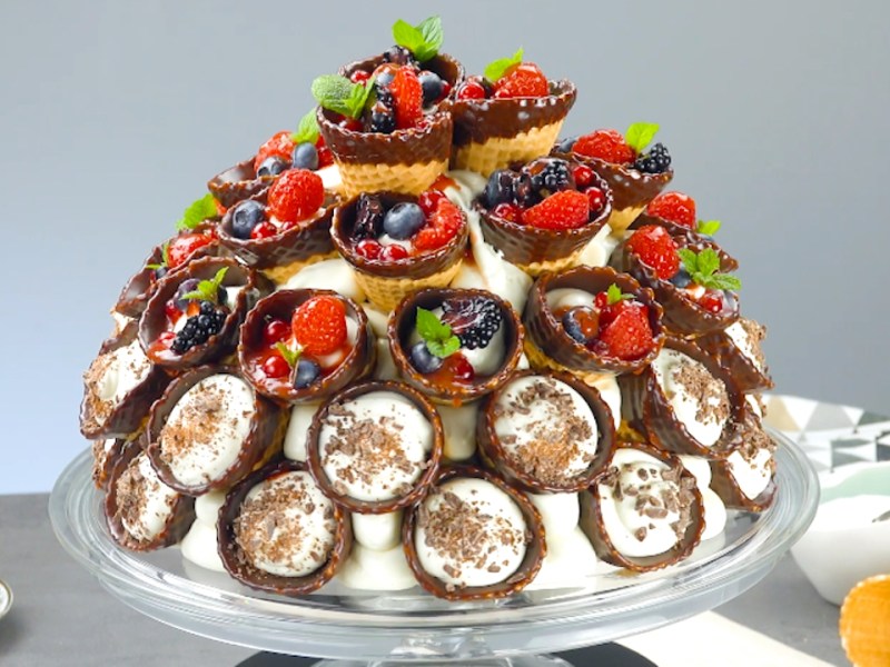 45 min Publié dansDesserts, Gâteaux et pâtisseries Gâteau composé de cornets de glace fourrés de mousse au chocolat et de baies par Bon Ap’Oct 5, 2020, 5:00 PMJul 18, 2024, 9:06 PM