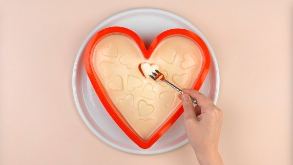 • Découpez des cœurs dans le pudding à l'aide d'un emporte-pièce et retirez-les soigneusement du moule à l'aide d'une fourchette.