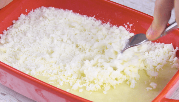• Sortez le mélange de lait congelé du congélateur et grattez la glace à l'aide d'une fourchette. À la fin, la glace ne devrait être constituée que de flocons.