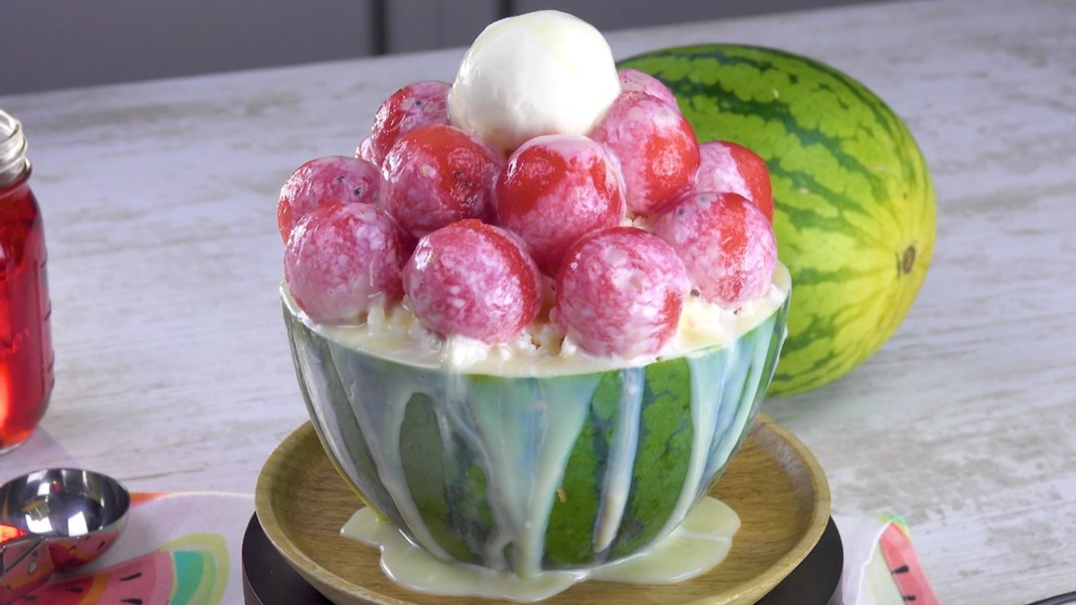 Un dessert d'une fraîcheur incomparable combinant pastèque et crème glacée.