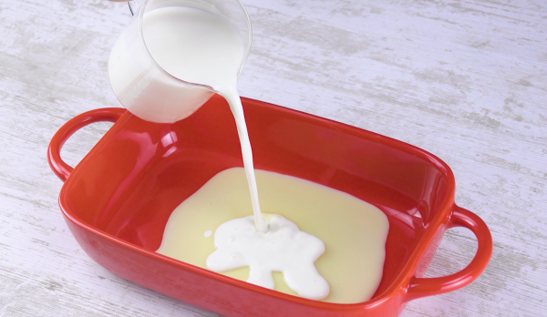 • Mettez le lait concentré avec le lait et l'eau dans un récipient, mélangez bien et congelez pendant au moins 4 heures.