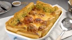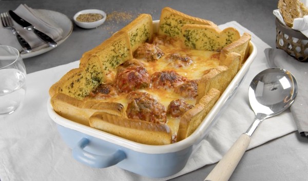 Le pain de mie confère à ce gratin aux boulettes de viande un aspect inédit. De plus, pendant la cuisson, le beurre aux herbes fond et donne un délicieux arôme aux boulettes de viande et à la sauce tomate. Ce gratin est si simple et rapide à préparer qu’il fera bientôt partie intégrante de votre quotidien ! Bon Ap’ !