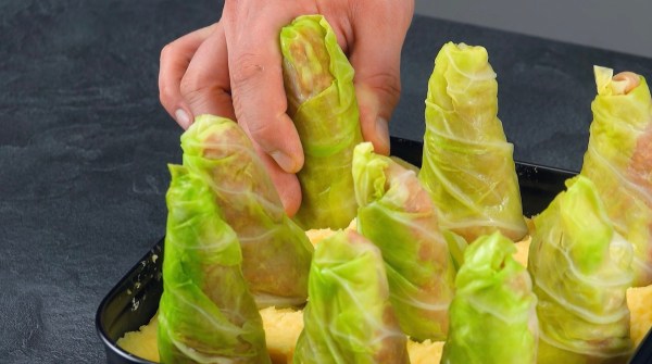 • Mélangez tous les ingrédients dans un saladier. Prenez environ 3 c. à s. de viande hachée que vous moulez en une sorte de cône. Déposez-la sur une feuille de chou pointu et enroulez la feuille tout autour. Répétez cette opération jusqu'à ce que vous n'ayez plus de viande. Mettez le chou farci au congélateur pendant 1 heure.