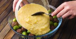 - Disposez les choux de Bruxelles et les boulettes de viande dans le fond d'un plat à tarte en alternant. Versez la purée par-dessus que vous étalez bien et saupoudrez de mozzarella. Pour terminer, enfournez à 185 °C pendant 15 minutes puis servez.